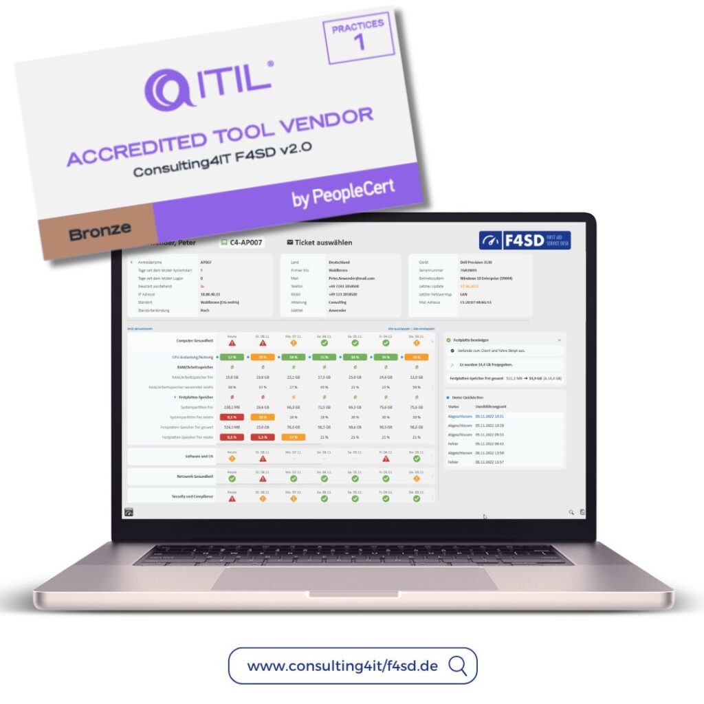 F4SD®, PowerShell Empirum und ITIL 4 Unsere Academy entwickelt sich erneut weiter – dieses Mal gleich dreifach! Mit den drei neuen Trainings zu F4SD®, PowerShell Empirum und ITIL 4 orientieren wir uns am Bedarf unserer Kunden und aktualisieren unser Academy-Portfolio. F4SD – unser Multitool für den First Level Support erobert immer häufiger die Service Desks unserer […]
